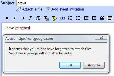 Lo sapevate che Gmail ha implementato la sua versione italiana inserendo il Forgotten Attachment Detector che da due anni ormai era nella versione anglofona?